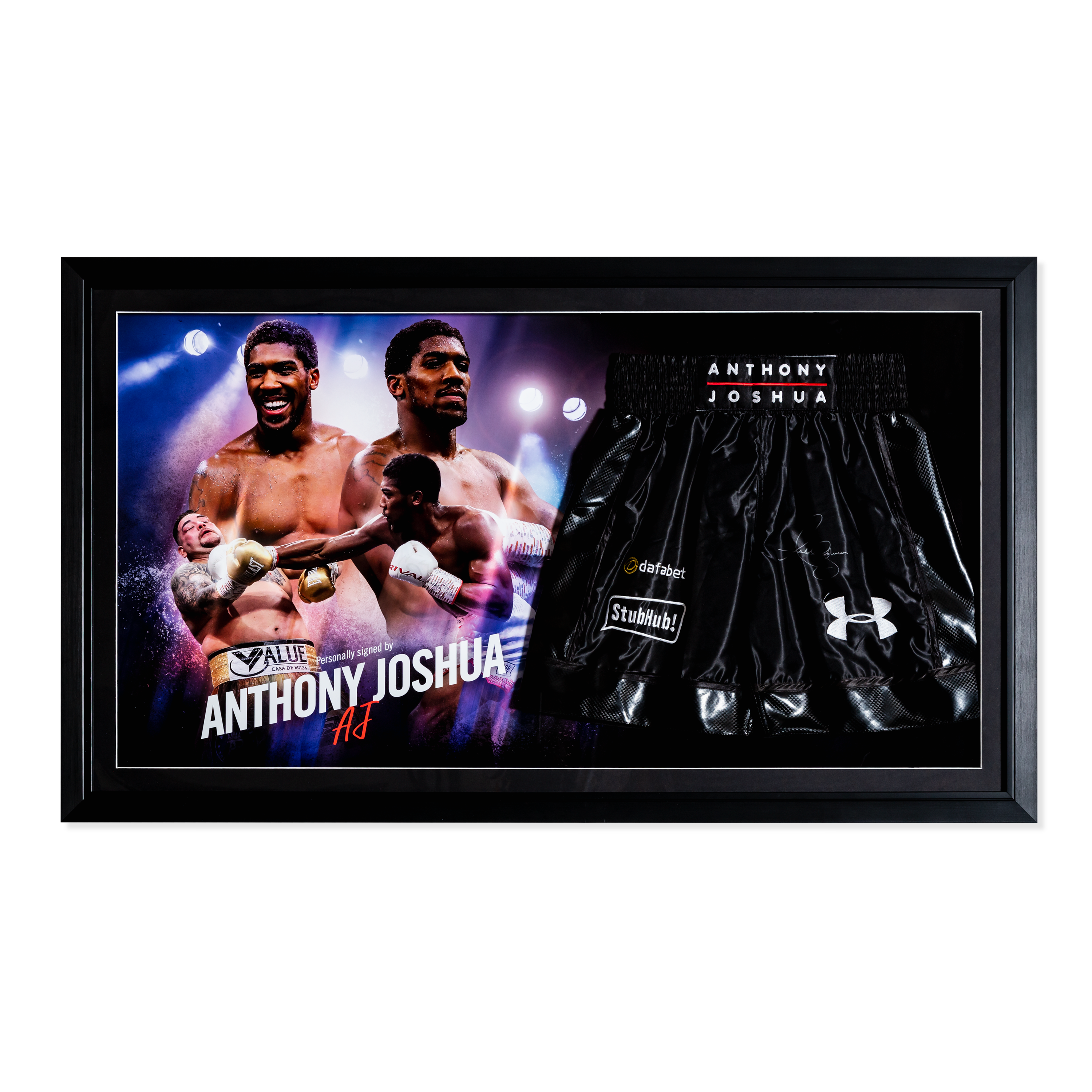 These stunning Replica Shorts, Hand Signed by Anthony Joshua, is made with a frame and picture collection which is designed in-house by our design team, and finished off in a stylish and modern bespoke black on black trim frame, making it a timeless addition to any home or office.