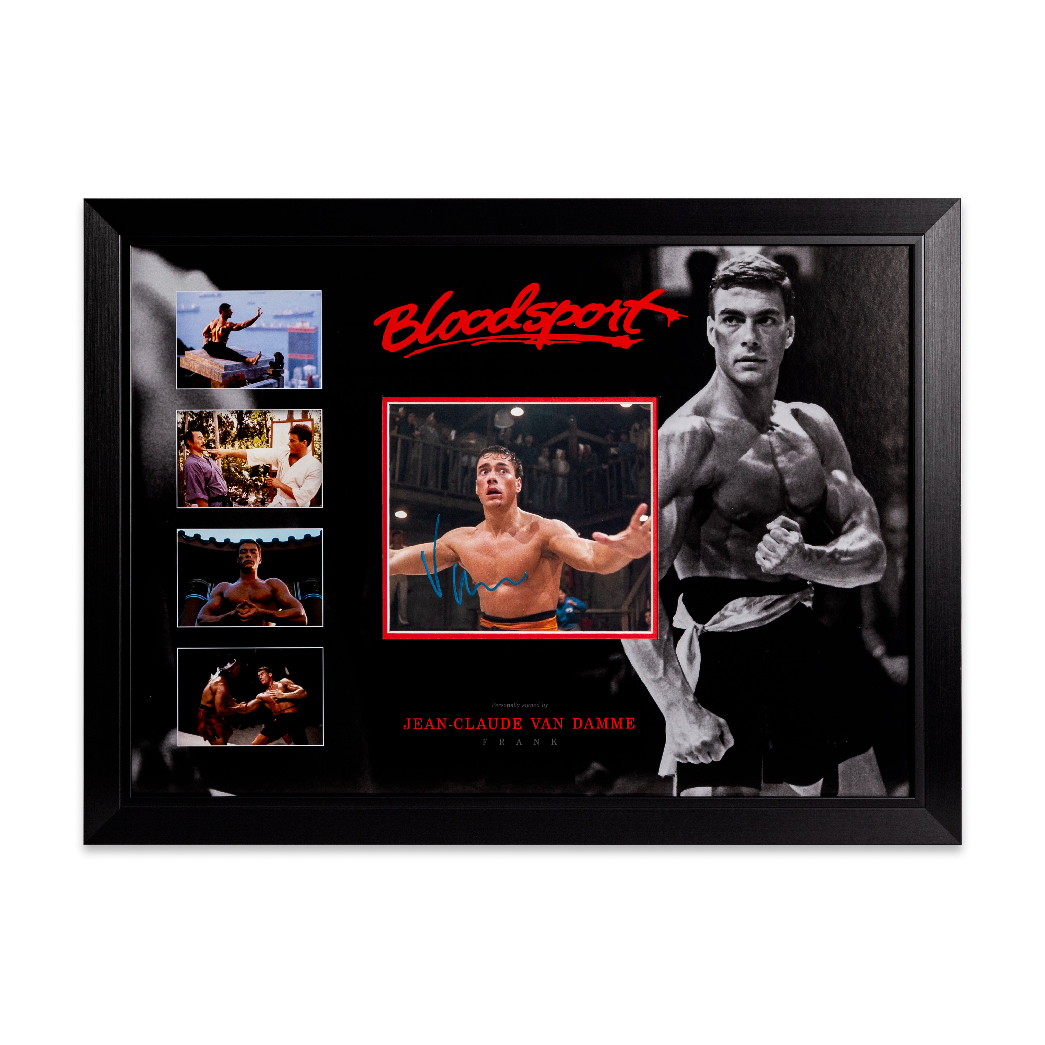 This stunning "Bloodsport" picture, hand signed by Jean-Claude Van Damme, is mounted on a custom-made picture board display which is designed in-house by our design team, and finished off in a stylish and modern bespoke black frame, making it a timeless addition to any home or office.