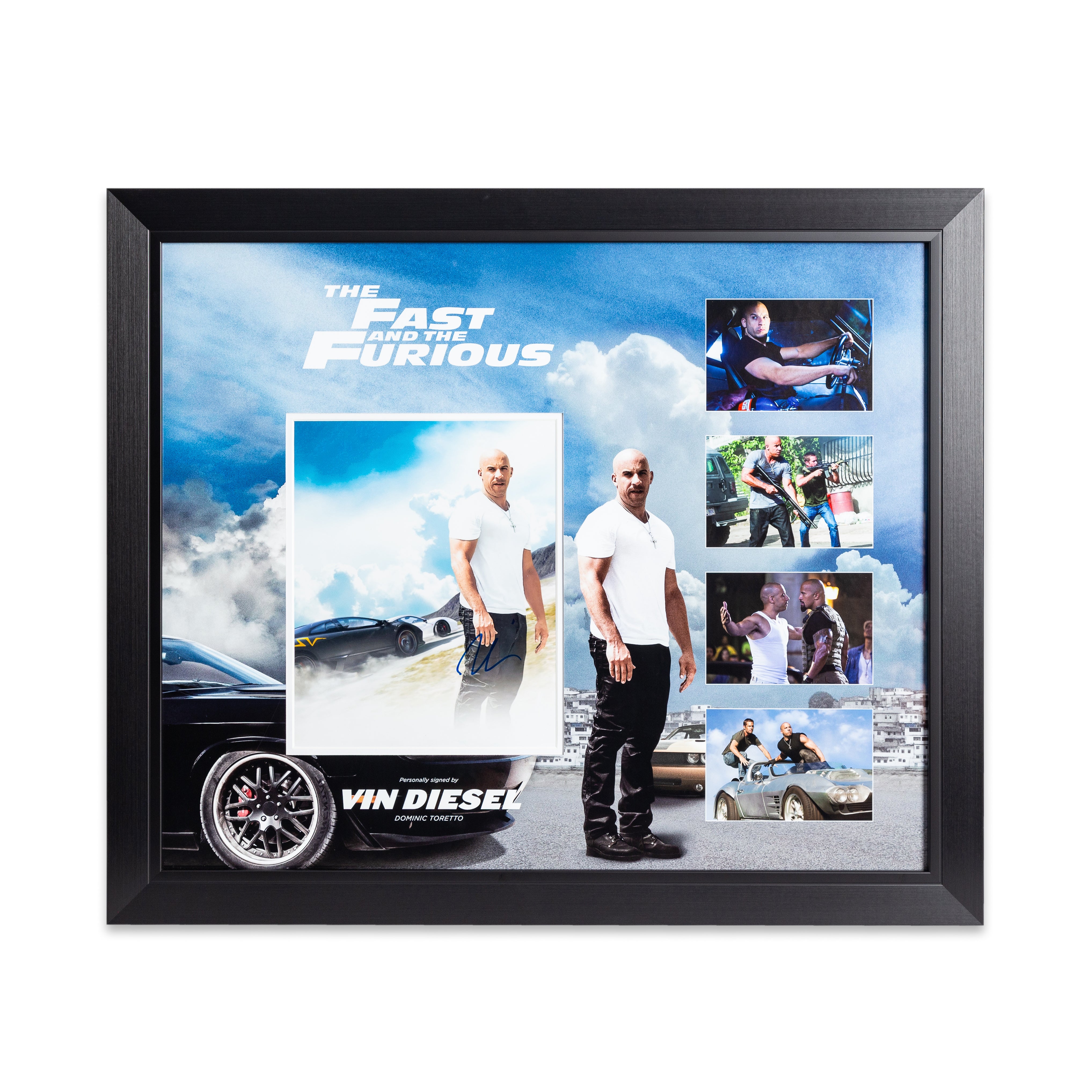 This stunning "The fast and the furious" picture, hand signed by Vin Diesel, is mounted on a custom-made picture board display which is designed in-house by our design team, and finished off in a stylish and modern bespoke black frame, making it a timeless addition to any home or office.