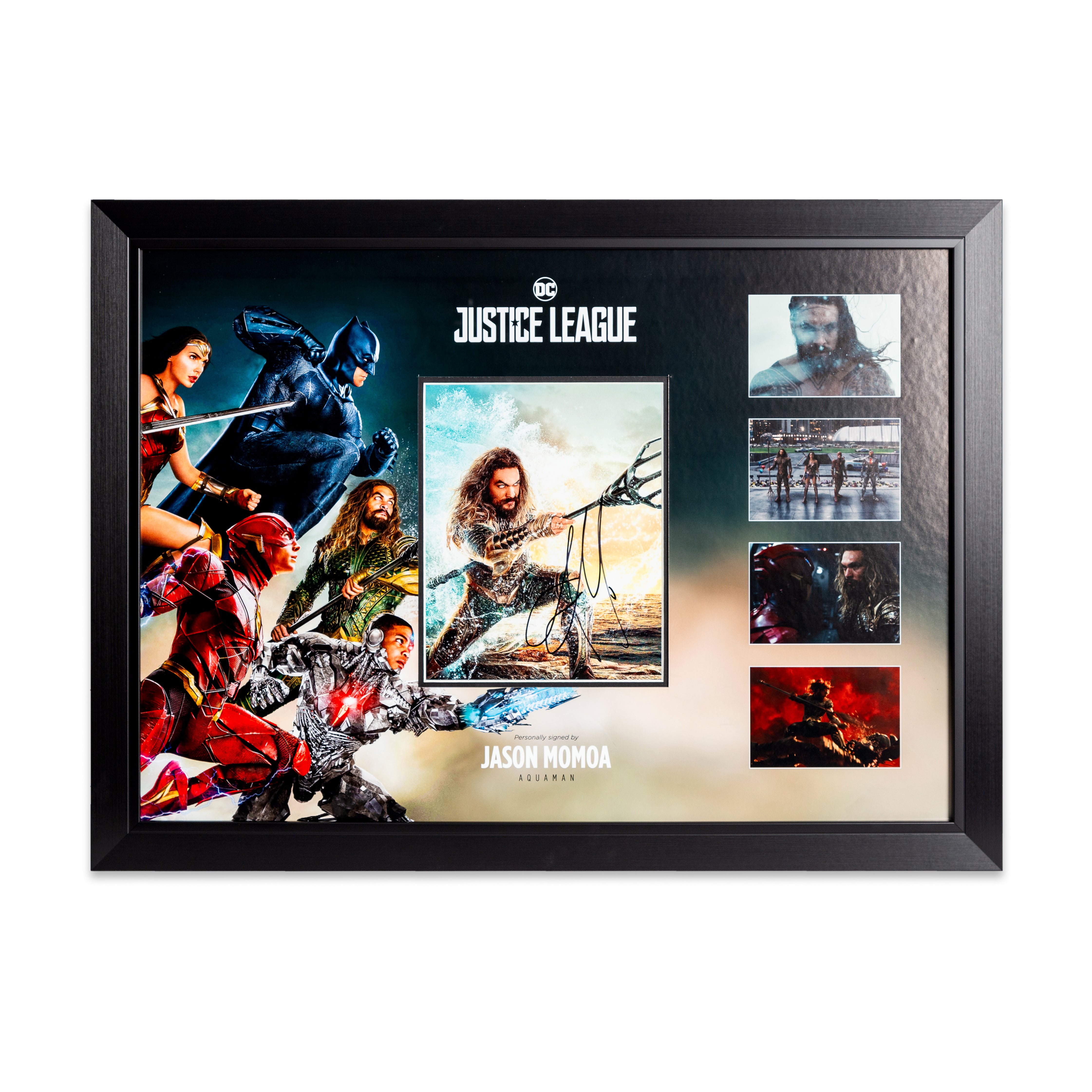 This stunning "The Justice League" picture, hand signed by Jason Momoa, is mounted on a custom-made picture board display which is designed in-house by our design team, and finished off in a stylish and modern bespoke black with black trim frame, making it a timeless addition to any home or office.
