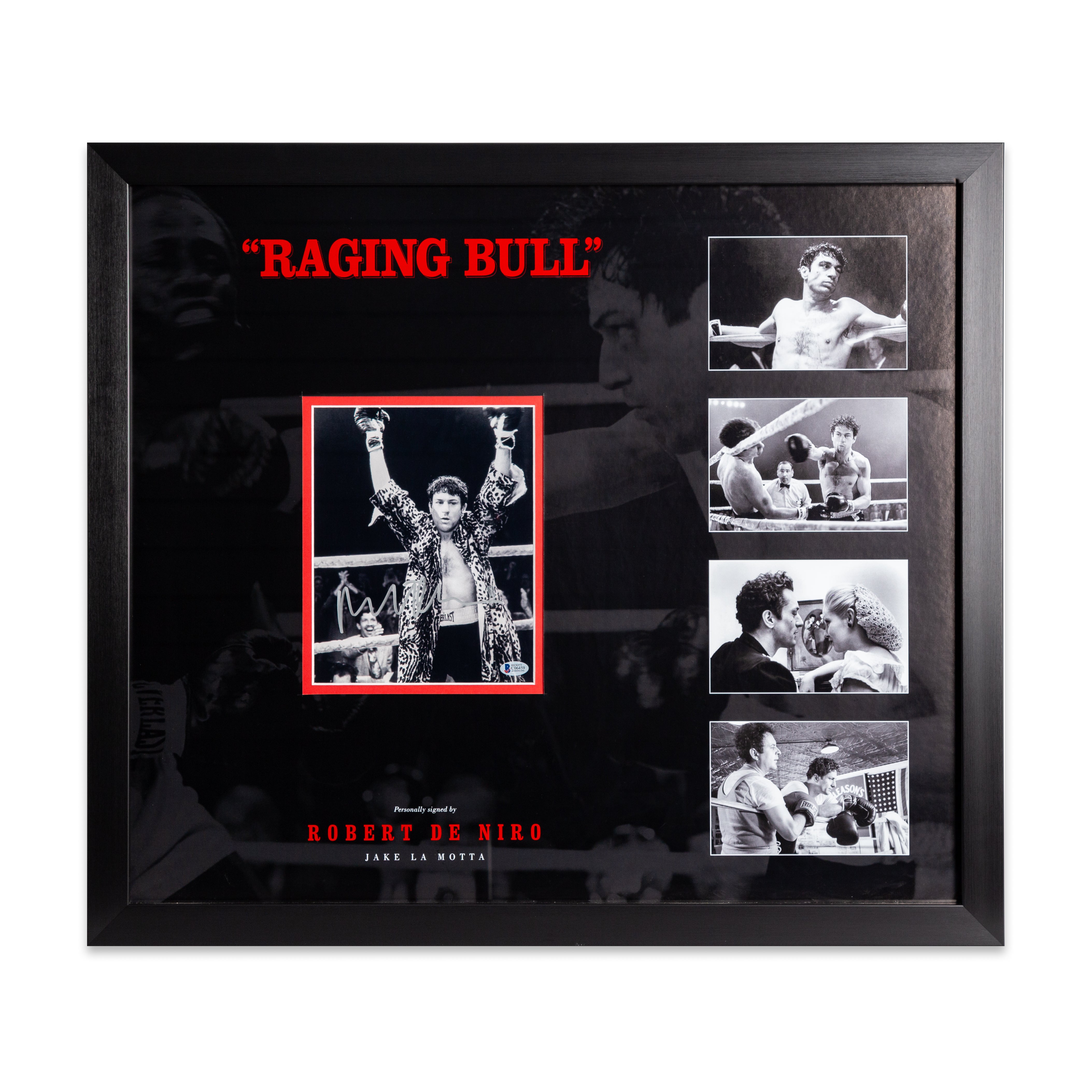 This stunning "Raging Bull" picture, hand signed by Robert De Niro, is mounted on a custom-made picture board display which is designed in-house by our design team, and finished off in a stylish and modern bespoke black frame, making it a timeless addition to any home or office.