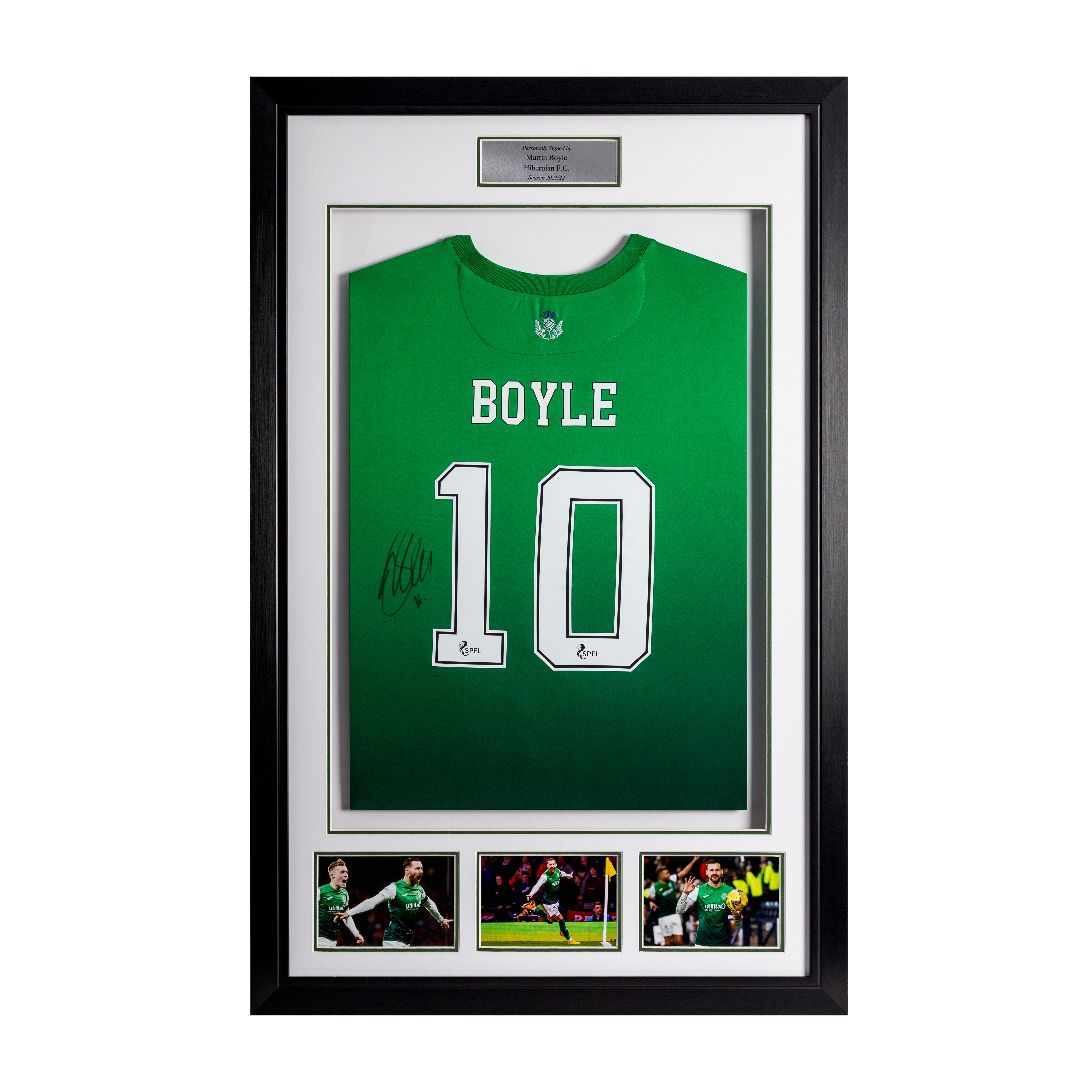 This stunning replica Shirt hand signed by Martin Boyle, is made with a frame and picture collection which is designed in-house by our design team, and finished off in a stylish and modern bespoke black and silver trim frame, making it a timeless addition to any home or office.