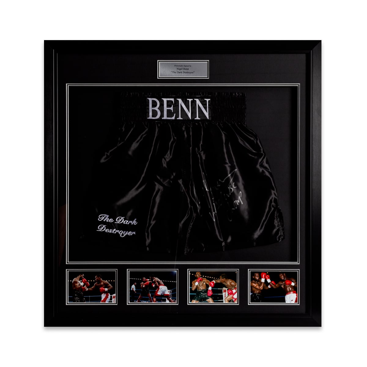 These Stunning Replica Shorts, Hand Signed by Nigel Benn, is made with a frame and picture collection which is designed in-house by our design team, and finished off in a stylish and modern bespoke black on black trim frame, making it a timeless addition to any home or office.