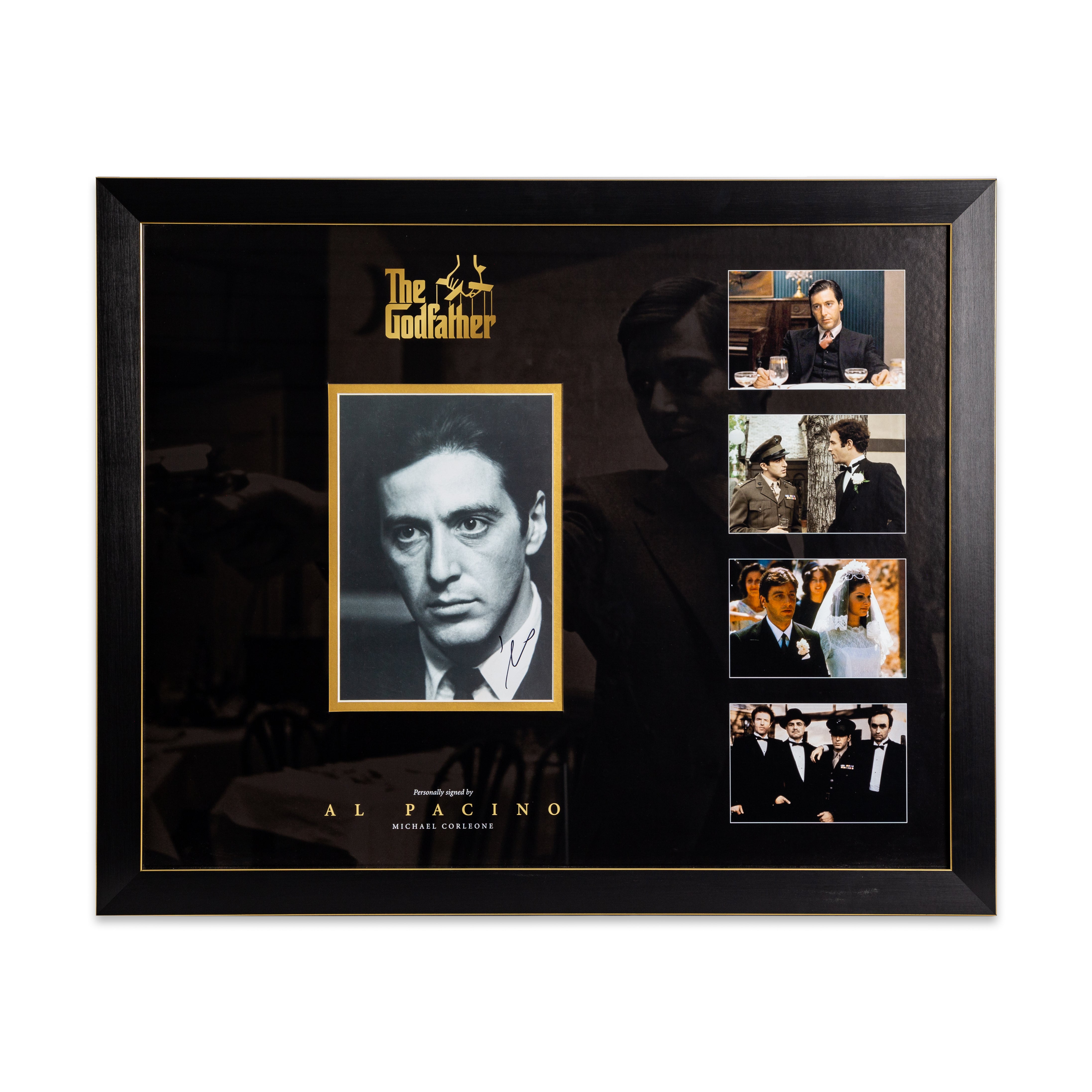 This stunning "The Godfather" picture, hand signed by Al Pacino, is mounted on a custom-made picture board display which is designed in-house by our design team , and finished off in a stylish and modern bespoke black and silver trim frame, making it a timeless addition to any home or office.