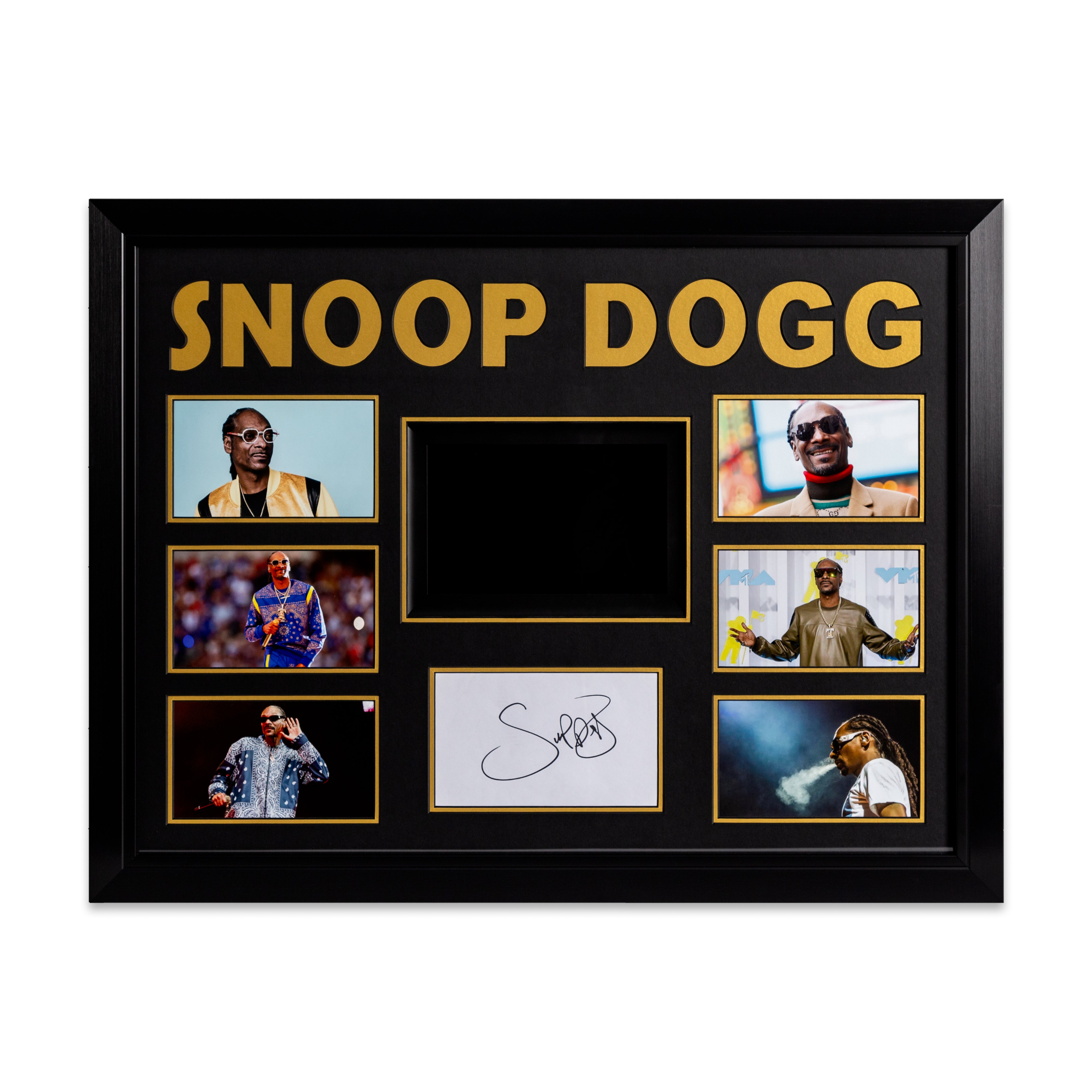 This stunning Snoop Dogg Picture Display hand signed by Snoop Dogg, is made with a TV frame and picture collection which is designed in-house by our design team, and finished off in a stylish and modern bespoke black and silver trim frame, making it a timeless addition to any home or office.