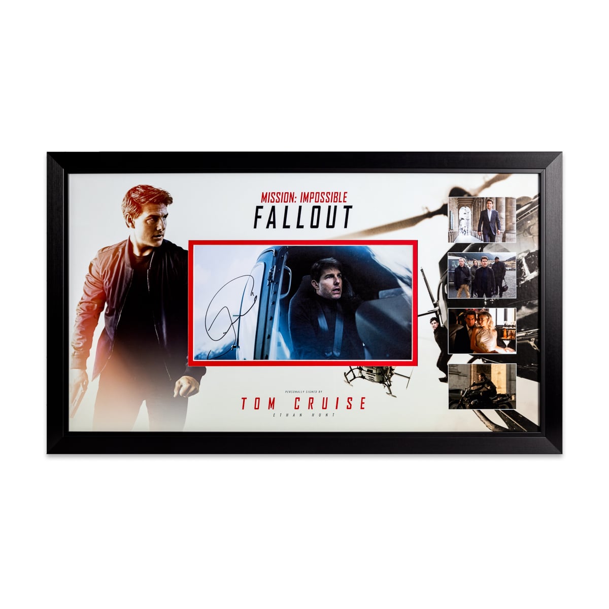 This stunning "Mission Impossible Fallout" Picture, hand signed by Tom Cruise, is mounted on a custom-made picture board display which is designed in-house by our design team, and finished off in a stylish and modern bespoke black frame, making it a timeless addition to any home or office.