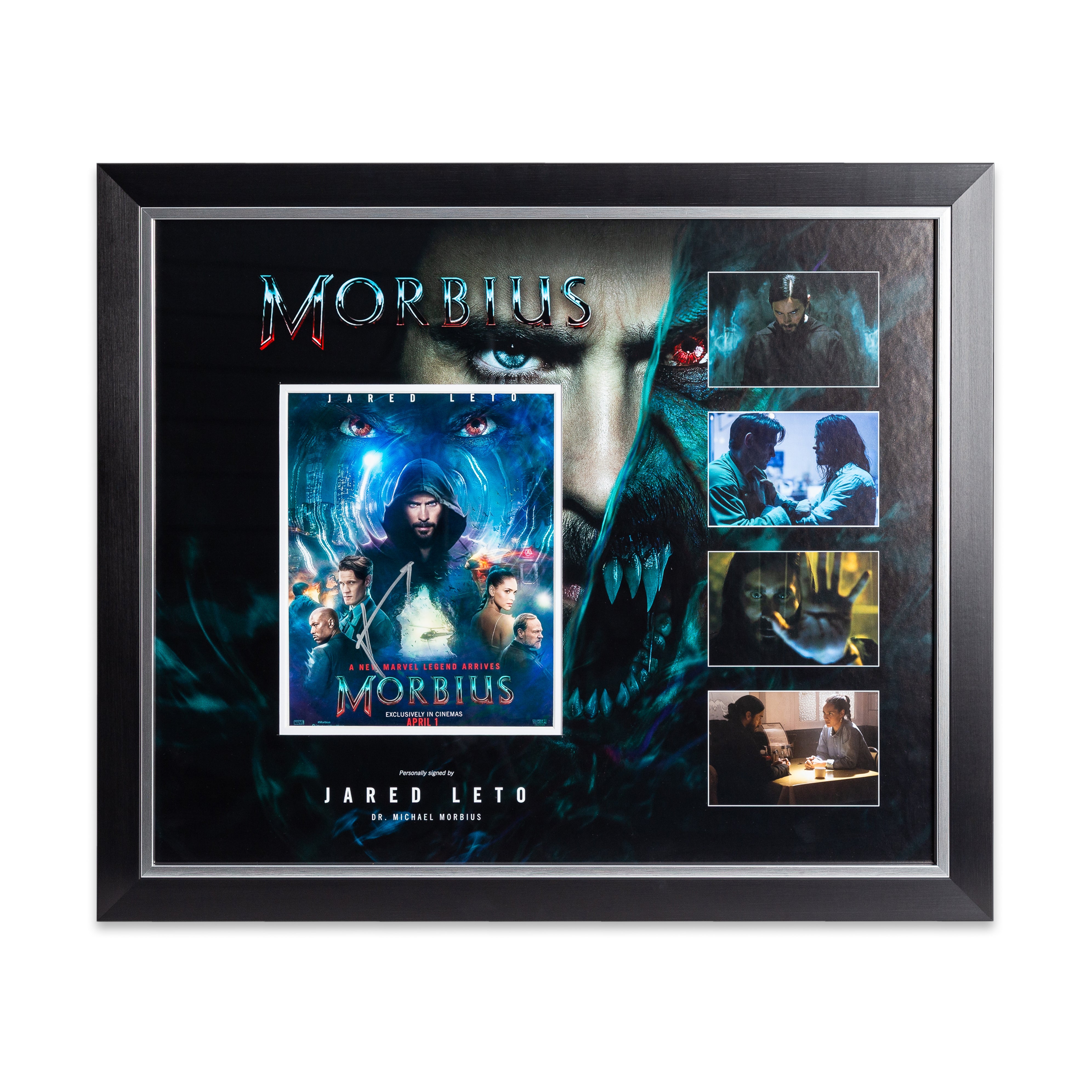 This stunning "Morbius" picture, hand signed by Jared Leto, is mounted on a custom-made picture board display which is designed in-house by our design team, and finished off in a stylish and modern bespoke black with silver trim frame, making it a timeless addition to any home or office.